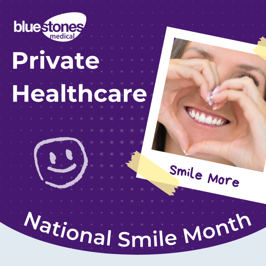 Our Private Healthcare Benefits May and June is National Smile Month, an annual celebration dedicated to raising awareness about the importance of good oral health. At Bluestones Medical, we believe a healthy, confident smile is something everyone deserves, especially those working in the healthcare sector who brighten the days of others through their care and